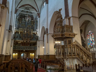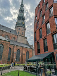ホテルは旧市街にあるのでチェックインしてすぐ散歩に出かけました。1〜2分も歩くとダム広場に着きましたが、なんと大きなクマの置物が広場を埋め尽くしていました。よく見るとそれぞれカラフルにペイントされ国別になっています。説明を読むと「ユナイテッド・バディー・ベア」という国連のイベントで各国の芸術家により彩色された2メートルの140体のクマが「文化と宗教の間における許容と人々のコミュニケーション」を目的に展示されているものでした。翌日、小雨模様でしたが、市内観光に出ました。リガの旧市街は石畳で歴史的な建物が多い落ち着いた趣のある街です。朝は観光客を含め人の出もすくなく静かでした。旧市街を取り巻く運河を巡る船に乗りに行きました。乗り場は緑と花が咲ほこる美しい公園の中でした。運河をめぐり港を回って元の運河に戻る1時間のクルーズはのどかで快適でした。ドーム広場に戻り12時からのリガ大聖堂のパイプオルガンコンサートに行きました。6718本のパイプを持つ世界で四番目に大きなパイプオルガンです。美しいステンドグラスの光の中を荘厳な音色が響き渡りました。123メートルの尖塔を持つ聖ペテロ教会の横のレストランで昼食を取りました。仔牛のシュニッツェルは本場のウイーンより美味しくラトビアの食文化の高さを感じました。細い道を抜けると市庁舎広場に出ました。前面にブラックヘッドの会館という壮大な建物があります。4世紀に未婚商人のギルト「ブラックヘッド」の為に建てられ、リガ建都800周年の1999年に再建されたのです街の中心リーヴ広場にはおしゃれなレストランが並び、その前にはきれいな花が咲いていました。宿泊したドームホテルは5星のわりには客室はそれほどでもありませんでしたが、Relais & Châteauxグループのホテルだけあり食事が非常に美味しく感激しました。