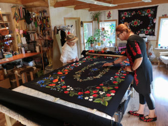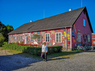 キフヌ島を10時のフェリーでたち本土に戻り、事前に手配しておいた専用車で湿地帯公園経由でムフ島行きのフェリーが出る港まで移動し、20分でムフ島に着きました。その後ムフ博物館に行きムフ刺繍を施した民族衣装を見てから、島の中心の村LIVAのムフ刺繍協会の運営するショップに寄り、最終的に宿泊先のペデステ・マナーに行きました。ペデステ・マナーはエストニアを代表する5星のマナーハウス(領主の館)で広大な敷地に24の客室があります。スパの他にはこれといった目ぼしい設備がない、ひたすらのんびり過ごすという究極のリゾートホテルです。部屋の窓から外を見ると芝生の上を全自動の掃除機(アイロボットの大型)が動き回る以外は誰もいません。有名なレストランはガラス張りで庭の眺めの美しく、料理もエレガントでした。翌日、10時にムフ刺繍作家のシリエさんの工房を訪問しました。当日は日本人を含む3つのグループがワークショップのために訪問されるとのことで、お忙しい中丁寧に作品について説明していただきました。
