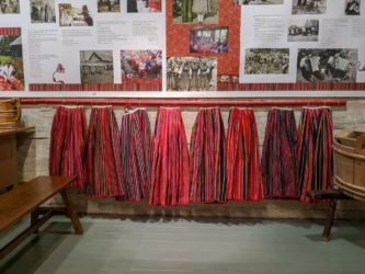 今回の旅行の最大の目的はエストニアのキフヌ島に行くことです。キフヌ島は生きた博物館と言われ、本土では失われた歌や踊り、手工芸、生活文化が残っており、女性は子供からおばぁちゃんまで今も伝統的な縞模様のスカートをはいています。更にムフ島のムフ刺繍とハープサルのレースを見学する手芸の旅です。